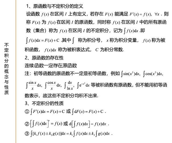 考研数学公式:不定积分的概念与性质