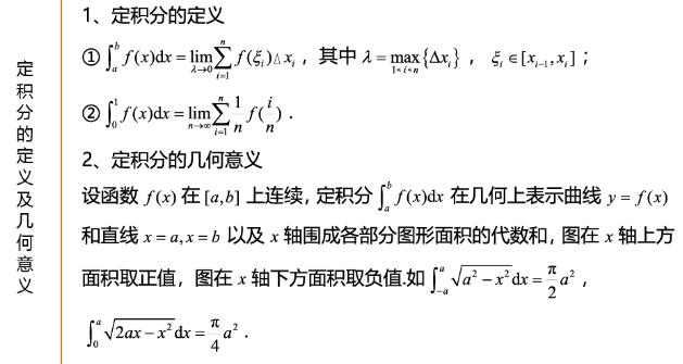 考研数学公式:定积分的定义及几何意义